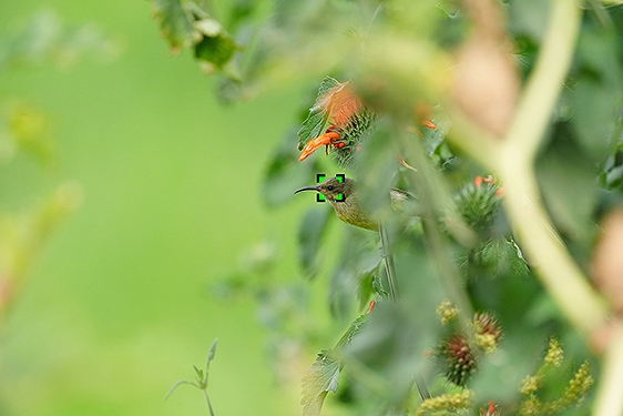 フォーカスエリア「スポット」のサイズが、従来のL、M、Sに加え、新規にXLとXSが加わり5段階になりました。たとえば、XSを選択することで、手前に枝などがあってもそれを避けて被写体にフォーカスを合わせやすくなります。また、カスタマイズ可能なフォーカスエリアが追加され、被写体やシーンに応じて、サイズのみならず縦横のアスペクトを任意に変更できます。陸上競技など横並びのシーンでは、AF枠を横長にカスタマイズすることで、先頭の選手にピントが合わせることが容易になります。