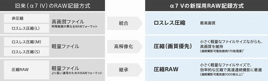 非圧縮RAWと同等の画質ながらファイルサイズを削減できる「ロスレス圧縮」に加え、新たに「圧縮(画質優先)」方式を搭載。ファイルサイズをより小さくして管理しやすく、高画質化も実現した新しいRAWフォーマットです。RAWファイルをさらに効率的に圧縮し、高画質を維持しながら長時間の連続撮影を可能にします。