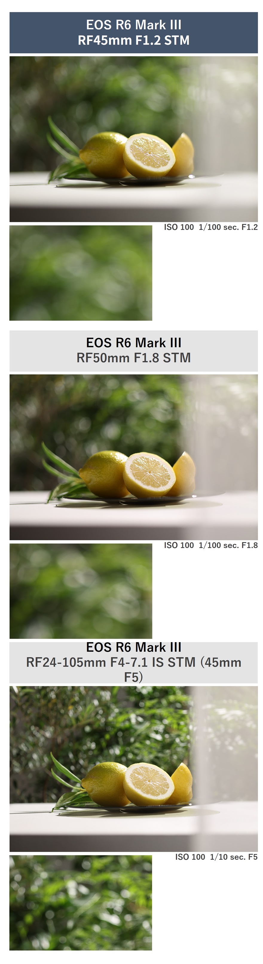 RF50mm F1.8 STMやRF24-105mm F4-7.1 IS STMと比較して、背景のボケがなめらかであり、より自然に溶け込むような印象を与えます。