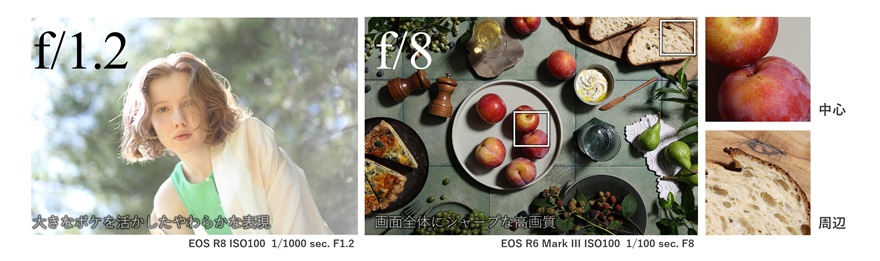 開放F値1.2の「RF/EFレンズシリーズ」において最軽量※となる質量約346gを実現しており、携帯性に優れています。
